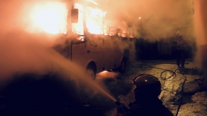 Alevler içerisinde kalan otobüsleri gören vatandaşlar, durumu polis, itfaiye ve sağlık ekiplerine bildirdi.