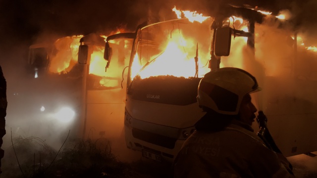 Edinilen bilgiye göre,, gece saatlerinde park halinde bulunan Selahattin K.’ya ait 16 NK 930 ve 16 NK 753 plakalı otobüs henüz belirlenemeyen bir sebepten dolayı yanmaya başladı.