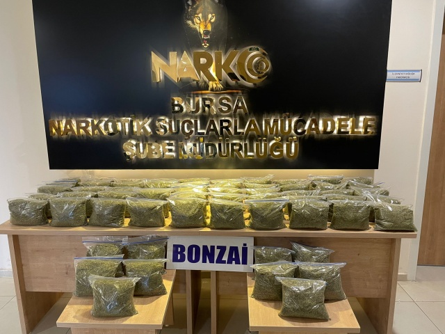 Bursa'da binlerce genci zehirleyecek miktarda bonzaiye müşteri arandığı bilgisini alan Narkotik Polisi. nefes kesen bir takiple 32 kilogram uyuşturucu ele geçirildi. Narkotik köpeği Galya'nın da katıldığı operasyonda 3 kişi tutuklandı.