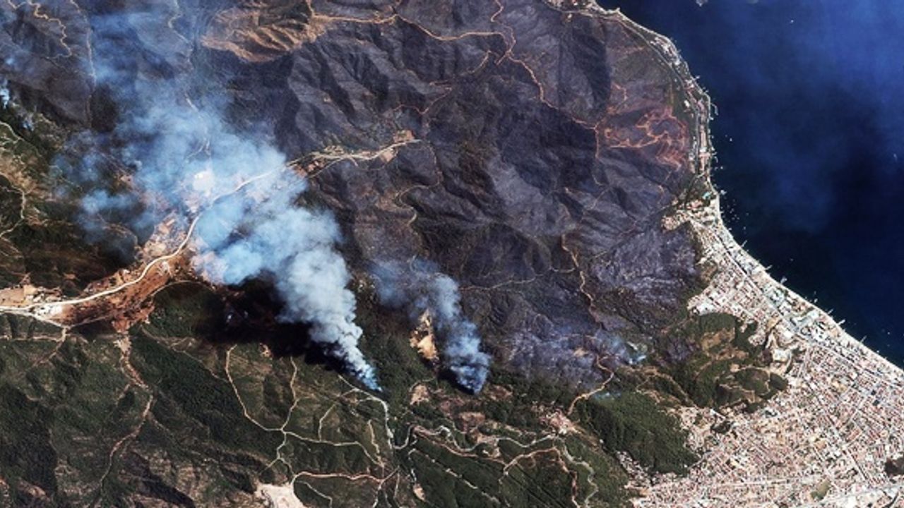 Muğla’nın Marmaris ilçesi ile Antalya’nın Manavgat ilçesinde meydana gelen yangının boyutu uydudan çekilen fotoğraflara yansıdı.