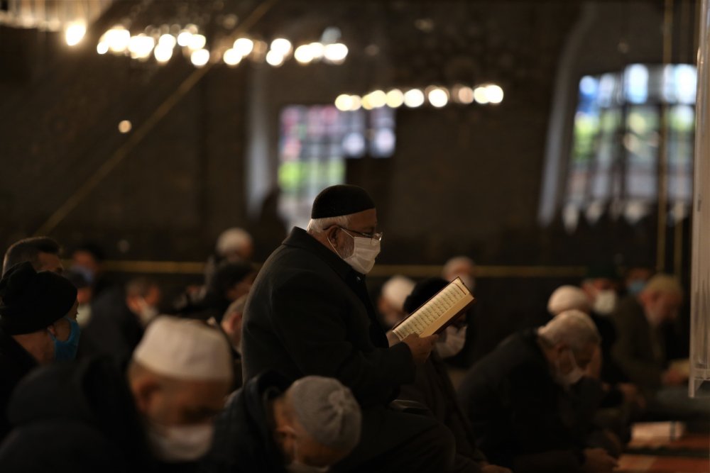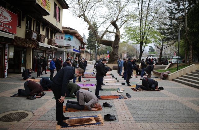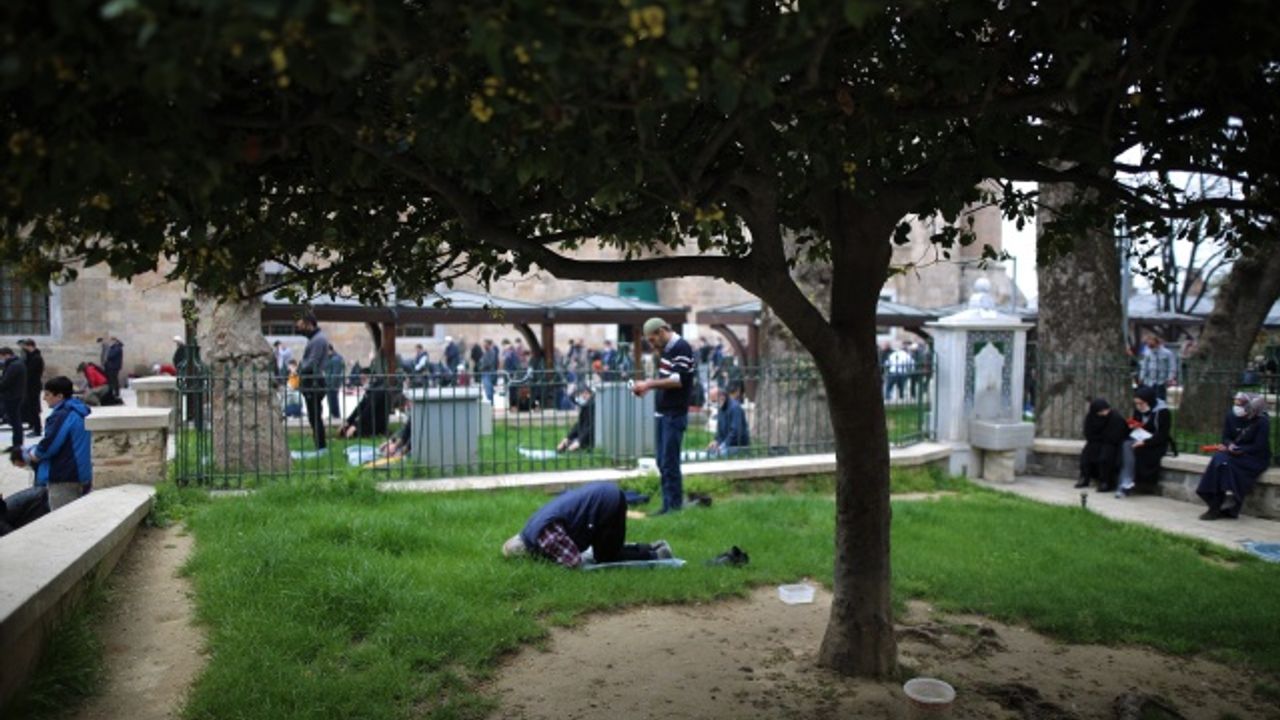 Pandemi kuralları çerçevesinde sosyal mesafeli ve kişisel seccadelerle niyaz edilen namaza çok sayıda vatandaş katıldı.
