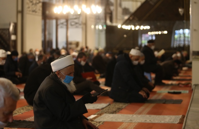 Namaz saatine kadar vatandaşlar Kur'an-ı Kerim okudu ve verilen vaazı dinledi.