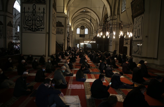 Ulucami’de namazını kılmak isteyen vatandaşlar ezan vaktinden önce camiye gelmeye başladı.