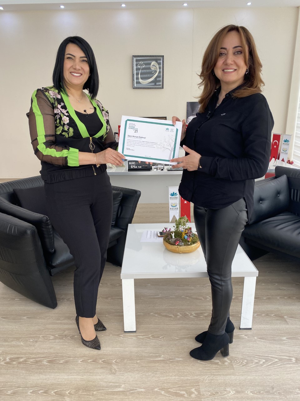 Ressam Şeniz Kükrer, AK Parti Bursa Milletvekili Refik Özen’e eserler hakkında bilgiler verdi.