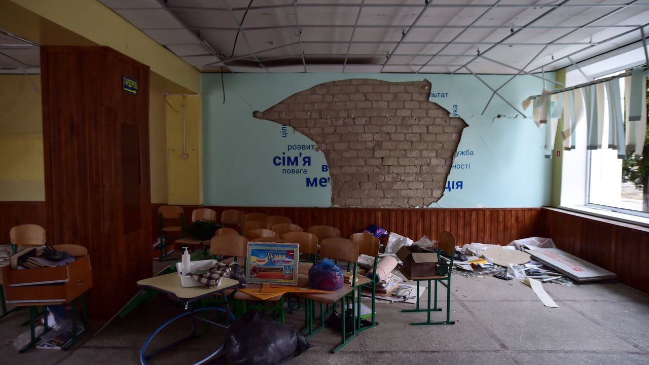 Kentte bulunan bir lisenin, saldırıların ardından büyük kısmı yıkılırken, bina kullanılamaz hale geldi.