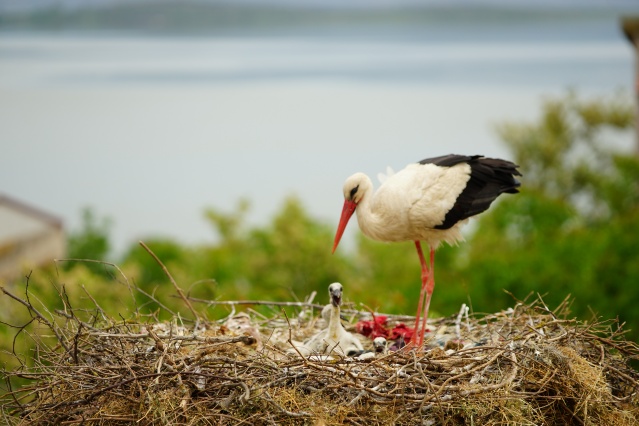 Anne ve baba leylek tarafından yakalanan solucan ve böceklerle beslenen yavrular, doğduktan 58 ile 64 gün sonra palazlanıp yuvadan ayrılıyor. 30 dereceye varan sıcaklıkta fotoğraf sanatçısı Turhan'ın fotoğraf kareleri yavruların sevimliliğini gözler önüne serdi.