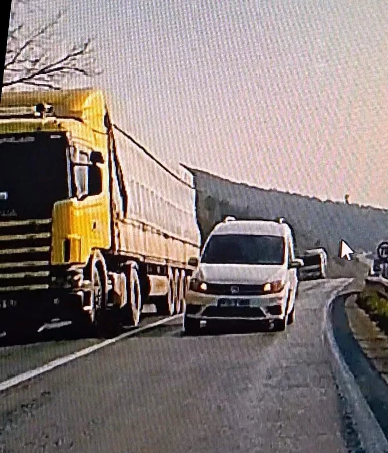 Bir anda karşısında aracı gören sürücü Yaşar B., ani refleks göstererek direksiyonu yolun sağına kırıp hızını düşürdü. Sürücünün soğukkanlı davranması sayesinde olası bir facianın önüne geçildi.