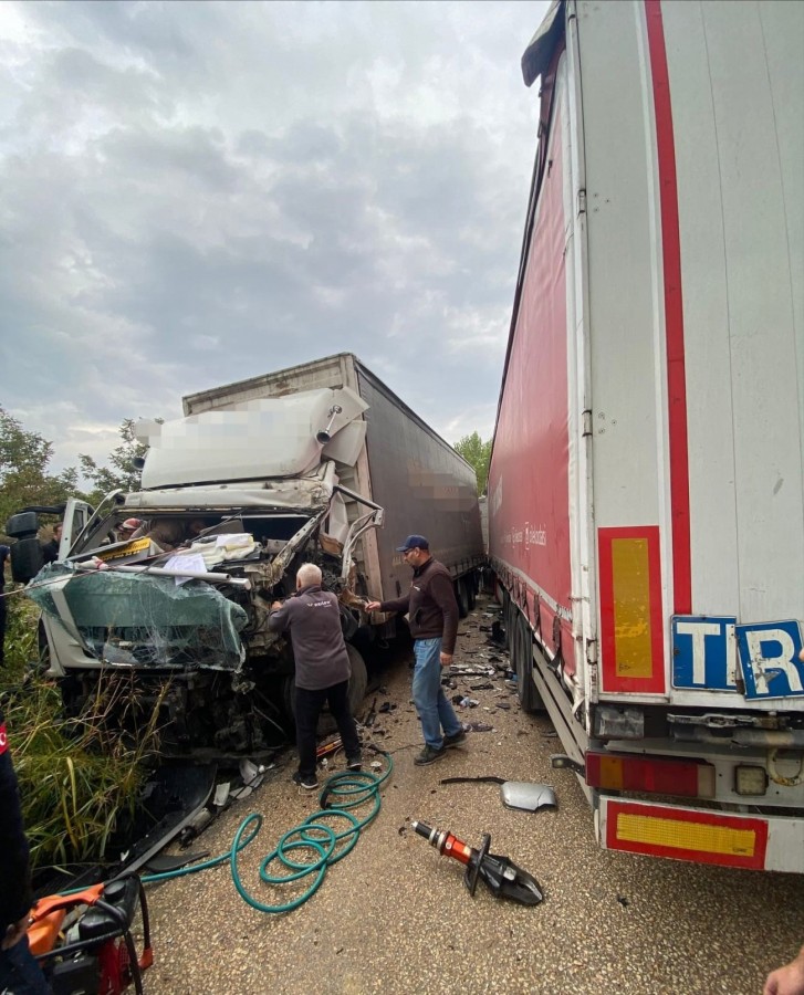 Edinilen bilgiye göre, kaza saat 09.30 İnegöl'ün Yeniceköy Mahallesi Ova Yeniceköy Caddesinde meydana geldi. Yol üzerinde seyir halinde olan Recep S.(30) yönetimindeki 16 YT 542 plakalı kamyon ile karşı yönden gelen sürücü Emrullah B.(39) yönetimindeki 16 KAK 52 kamyon daralan yolda kafa kafaya çarpıştı. Kamyon sürücüsü Emrullah B.(39) kabinde sıkıştı.