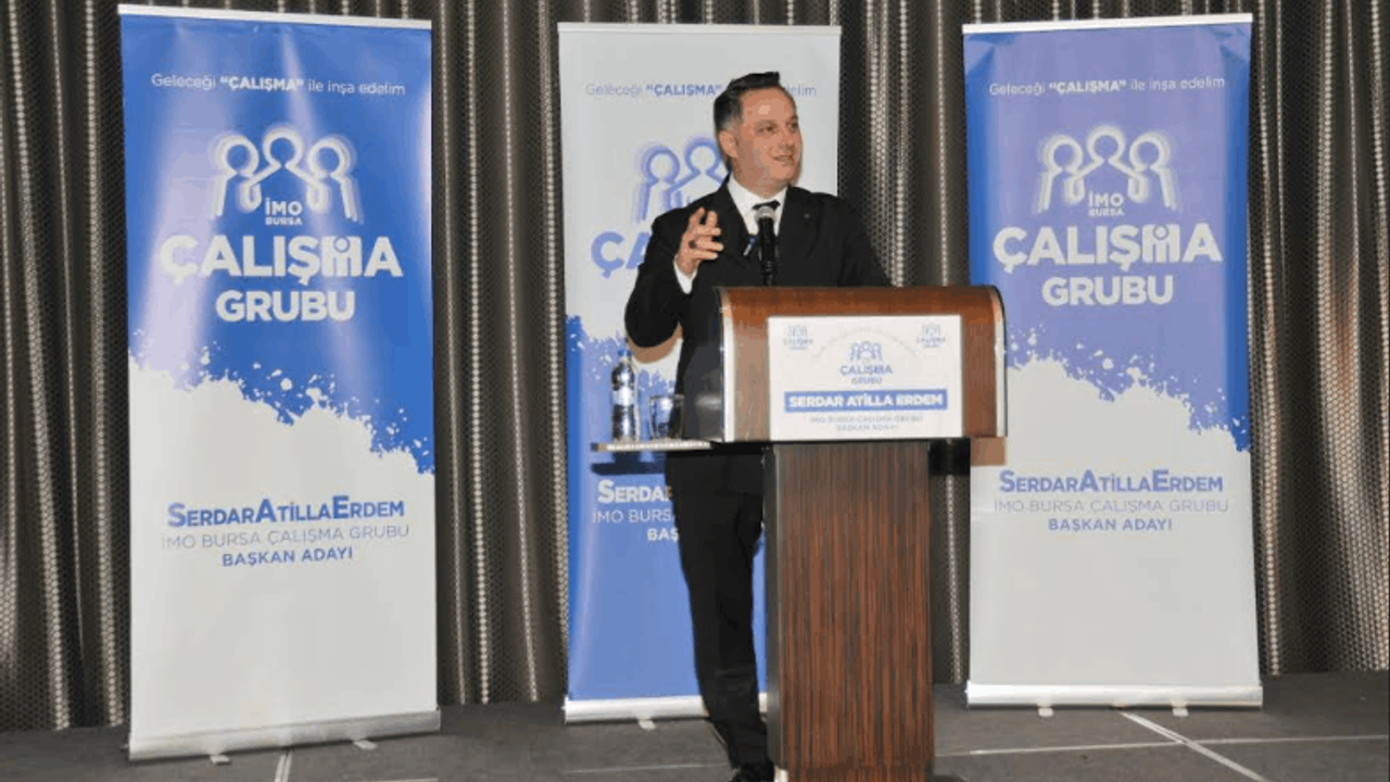 Saygı duruşu ve İstiklal Marşı ile başlayan toplantı, İMO Bursa Çalışma Grubu’nun oda yönetiminde bulunduğu dönemlere ait faaliyetleri içeren film gösterimiyle devam etti. Ardından kürsüye çıkan Başkan Adayı Serdar Atilla Erdem, Çalışma Grubu’nun geçmişten bugüne yürüttüğü çalışmaları ve önümüzdeki dönem hayata geçirilmesi planlanan projeleri başlıklar halinde aktardı. Erdem, görev süreleri boyunca İMO Bursa Şubesi’ni yeniden “lider oda” konumuna taşıdıklarını vurguladı.