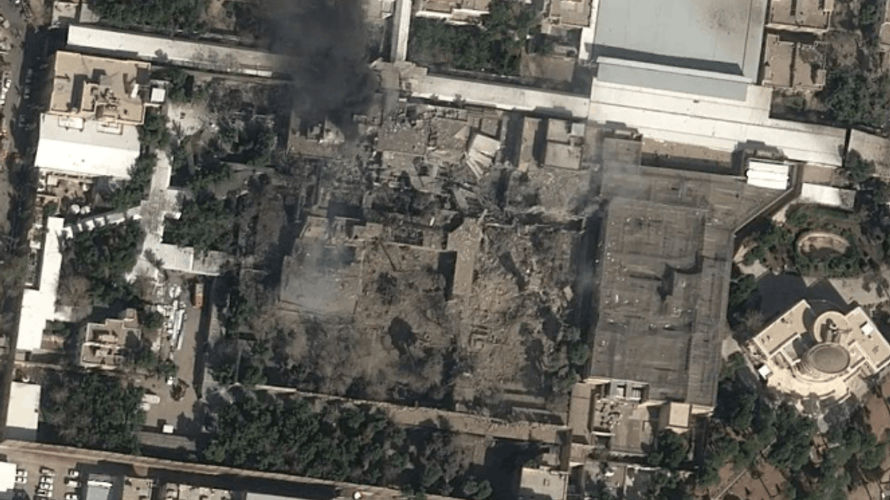 Hamaney’in Tahran’daki yerleşkesine yapılan saldırı uydu kameralarıyla görüntülendi. Airbus tarafından çekilen görüntüde yerleşkenin üzerinde siyah bir duman bulutu ve geniş çaplı hasar olduğu görülüyor ancak Hamaney’in nerede olduğu belirsizliğini halen koruyor.