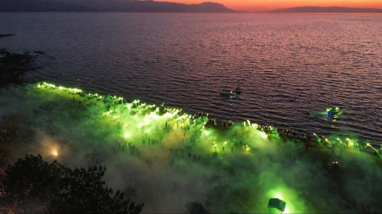 İznik Bursasporlular Derneği tarafından organize edilen şampiyonluk kutlamasında yeşil-beyaz renklere gönül veren çok sayıda taraftar bir araya geldi. İznik sahilinde gerçekleştirilen kutlamalarda meşaleler yakılırken, marşlar ve tezahüratlar eşliğinde büyük coşku yaşandı. Sahil boyunca oluşan yeşil-beyaz atmosfer renkli görüntülere sahne oldu.