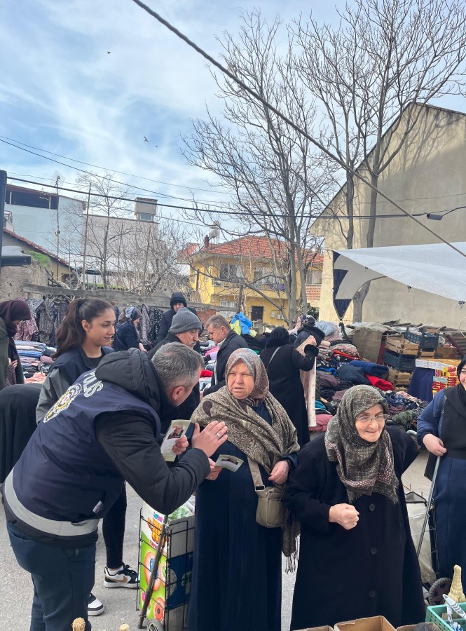 İlçe halkının yoğun olarak bulunduğu pazar yerinde alışveriş yapan vatandaşlar ve esnafla tek tek görüşen ekipler, dolandırıcılık yöntemleri hakkında uyarılarda bulundu.