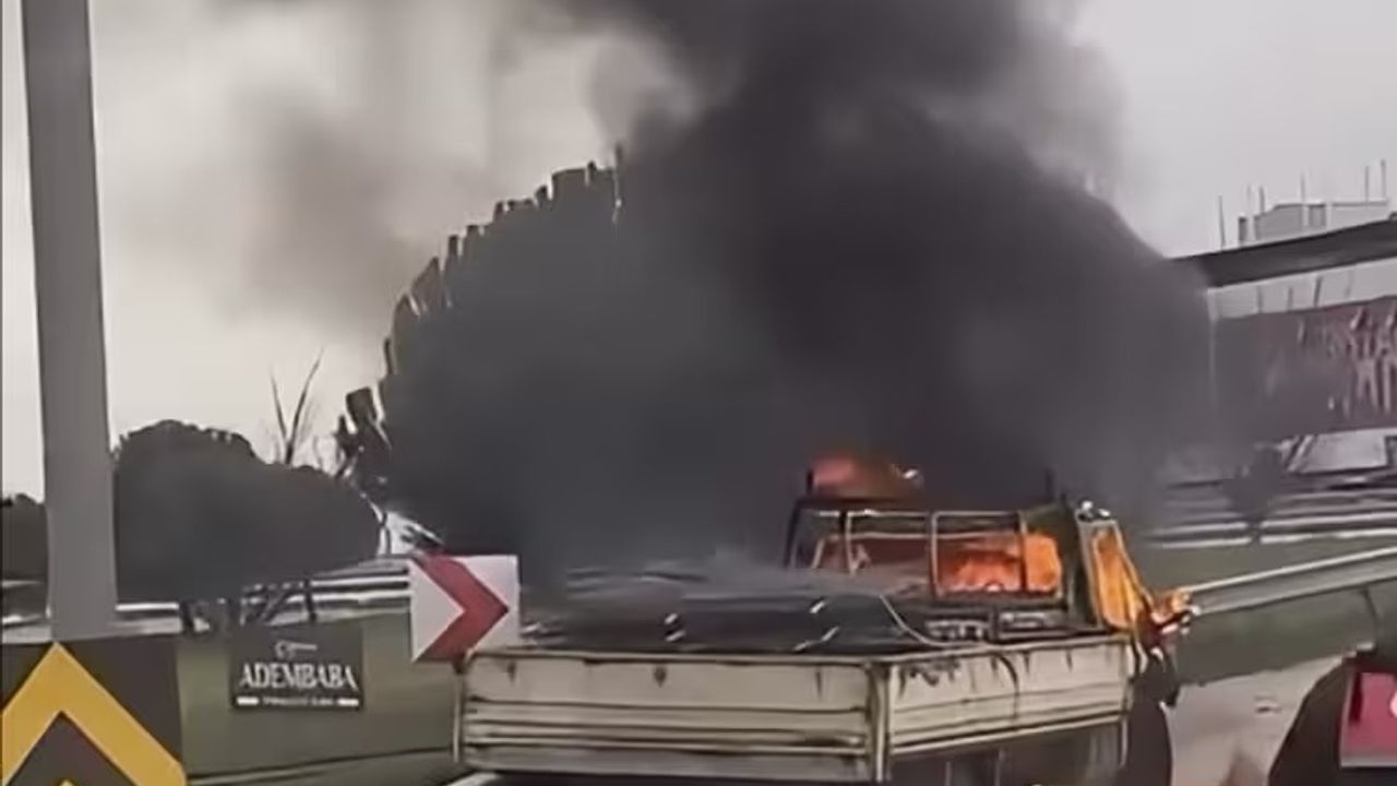Yangını fark eden sürücü, aracı durdurmaya çalışarak kendisini son anda dışarı atmayı başardı. Sürücüsüz şekilde bir süre ilerlemeye devam eden kamyonet, Görükle dönüş sapağında bulunan bariyerlere çarparak durabildi.