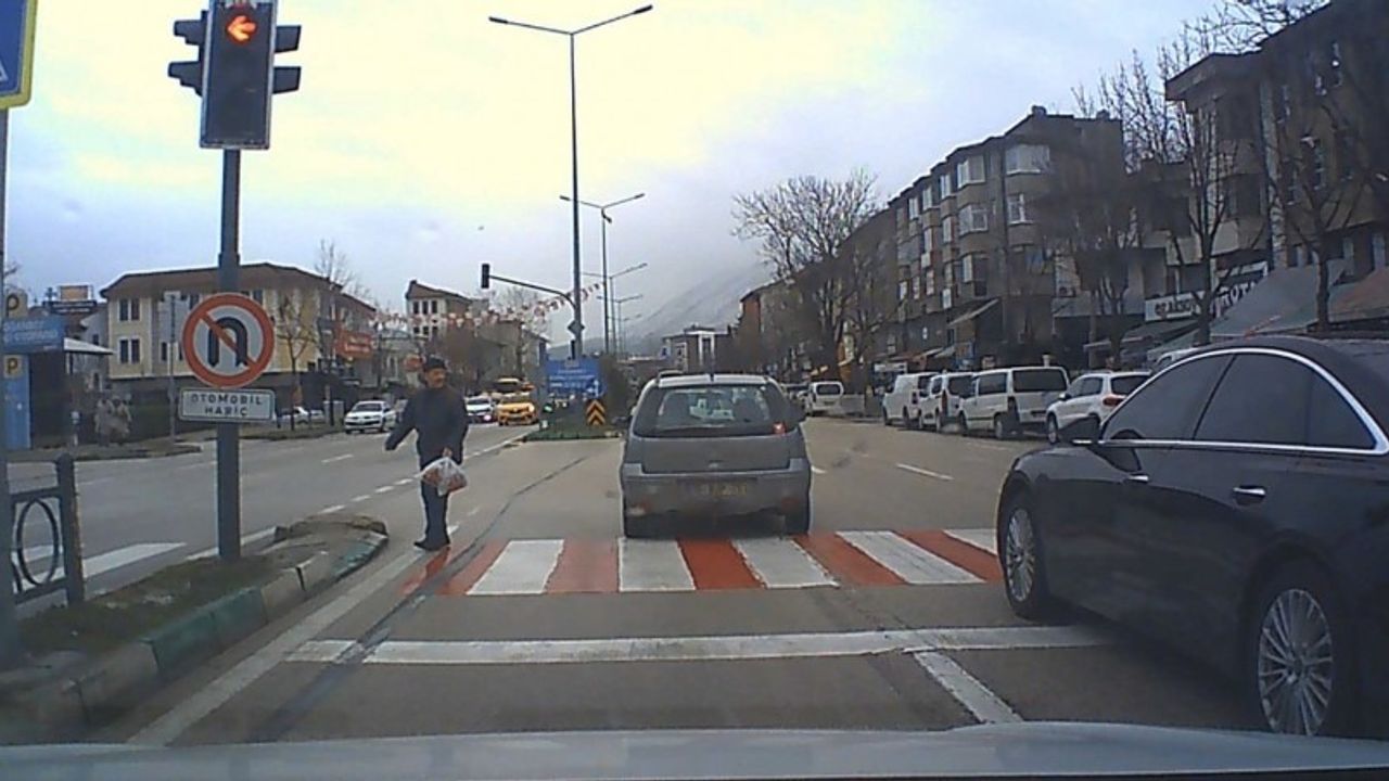 Bu sırada 16 BJP plakalı otomobil, sola dönüş yapacakmış gibi dönüş şeridine girdi. Ancak sola dönüşten vazgeçen sürücü şerit değiştirip yoluna devam etmek istedi. Manevra sırasında geçitteki yayanın canını hiçe sayan sürücü tehlike yaşattı. Muhtemel bir kazanın son anda önlendiği olay, trafik kurallarının ihlal edilmesinin doğurabileceği ciddi sonuçları bir kez daha gözler önüne serdi. O anlar da bir otomobilin araç kamerasına yansıdı.