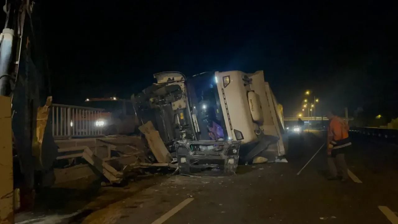 Savrulan TIR, yol kenarındaki bariyerleri adeta biçerek yaklaşık 20 metre sürüklendikten sonra yan yattı. İhbar üzerine olay yerine polis ve 112 Acil Sağlık ekibi sevk edildi. Şans eseri kazayı ufak sıyrıklarla atlatan sürücü, araçtan kendi imkanlarıyla çıktı. Yan yatan tırdan dolayı çevreyolunun Bursa istikametinde ve şehir içine giden yan yolda trafik durma noktasına geldi