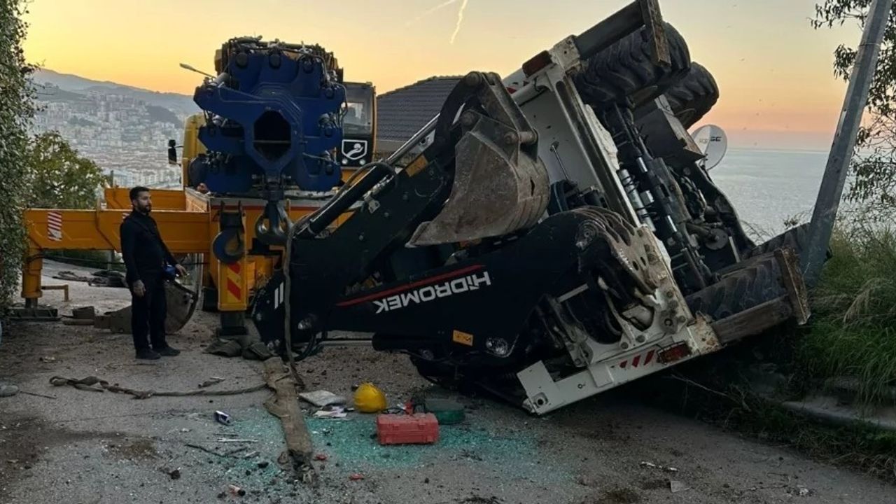 Vinçle kaldırılan kepçe, henüz belirlenemeyen bir nedenle devrilerek yere düştü. O anlar çevrede bulunan vatandaşlar tarafından cep telefonu kamerasıyla kaydedildi.