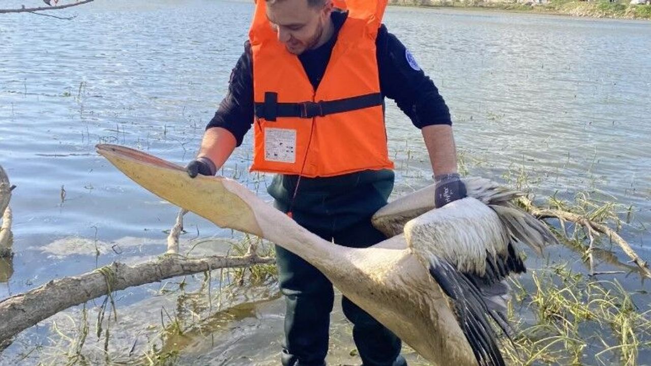Kurtarılan pelikan, tedavi altına alınmak üzere İnegöl Belediyesi Sahipsiz Hayvan Bakım ve Tedavi Merkezi'ne götürüldü.