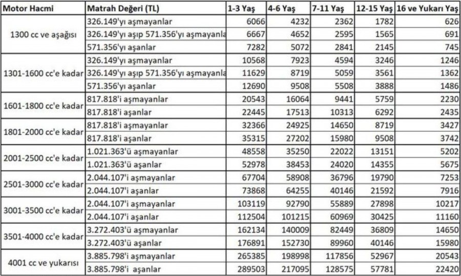 Taşıt değeri 326 bin 149 TL'ye kadar: