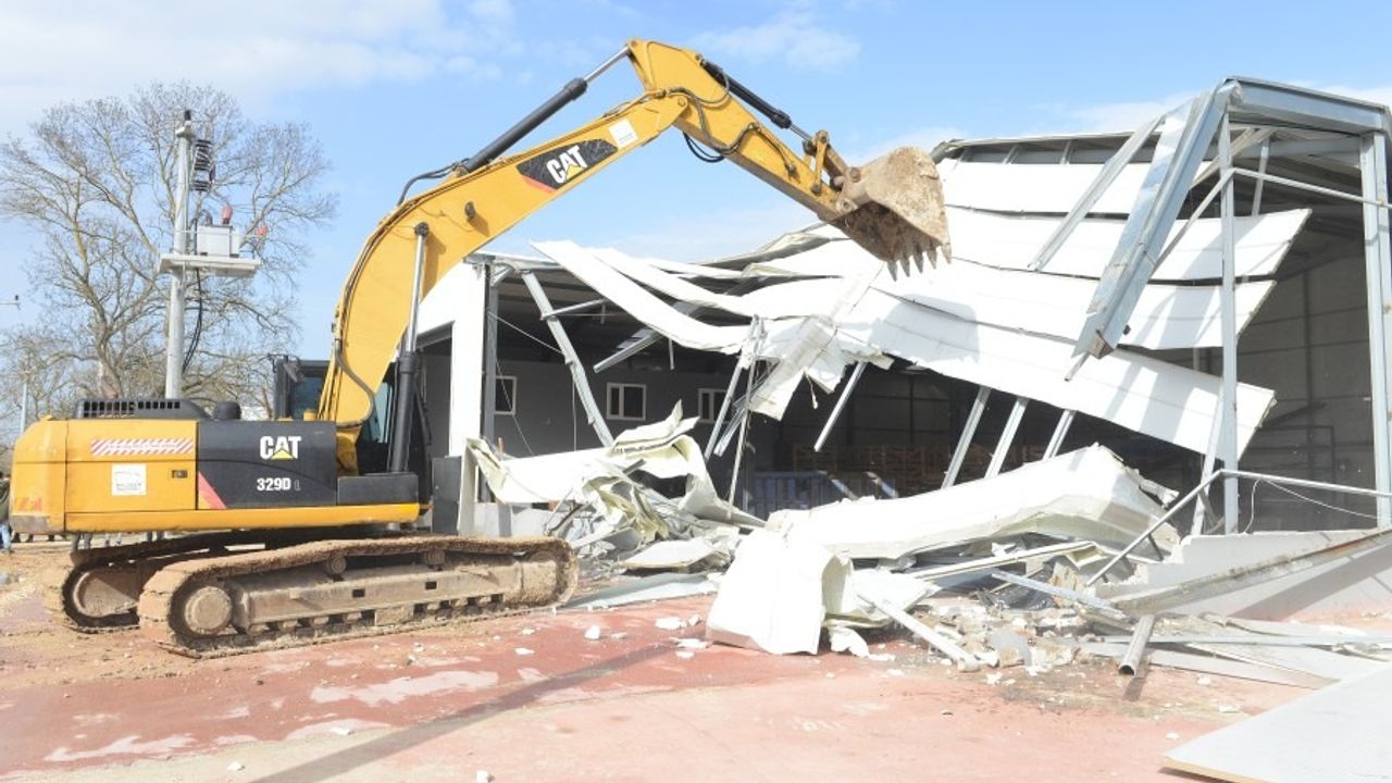 Yıkım programına alınan ilk yer, fabrika olarak kullanılan 600 metrekarelik bir yapı oldu. Yıkım öncesinde, işletme sahibinin mağduriyet yaşamaması adına içeride bulunan makine ve üretim ekipmanları titizlikle tahliye edildi. Malzemelerin zarar görmemesi için alınan önlemlerin ardından iş makineleri devreye girdi ve yapının yıkımı gerçekleştirildi.