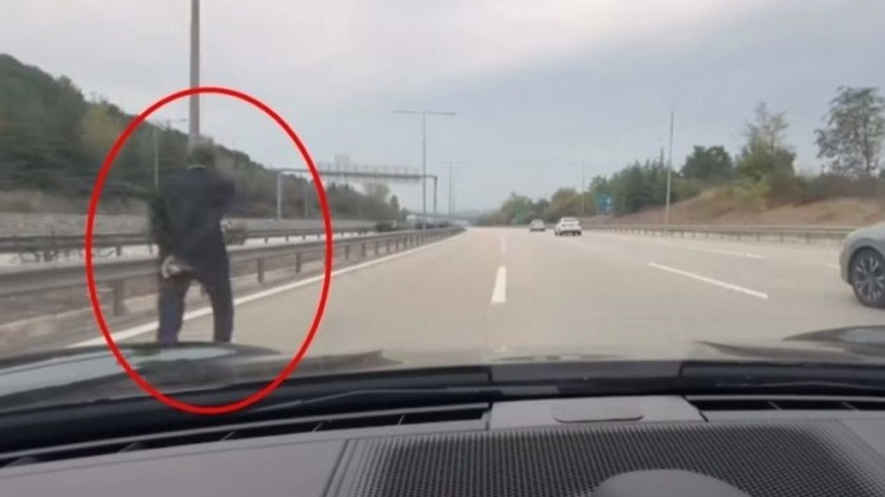 Osmangazi ilçesi Demirtaş Viyadüğü'nden İzmir istikametine seyir halinde olan otomobilin sürücüsü, sol şeritte yolun ortasında yürüyen yayayı son anda fark edip, manevra yaparak sağ şeride geçti. Sürücünün dikkati sayesinde kaza önlenirken, o anlar araç kamerasına yansıdı.