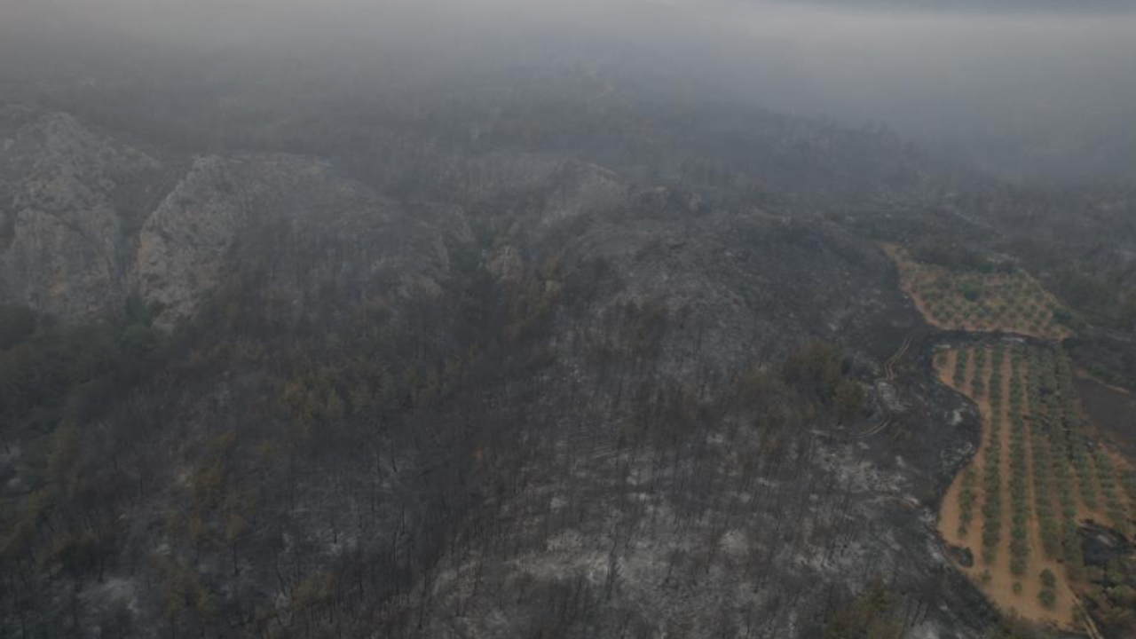 Yangının hasarı gün yüzüne çıkmaya başlarken, bazı yanan bölgeler dron ile havadan da görüntülendi.