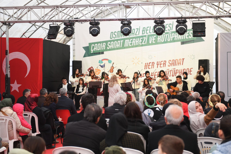 İlçedeki çocukların sömestr tatilini en güzel şekilde değerlendirmesi adına Yunuseli ve Altınova mahallelerinde Çadır Kültür Sanat Merkezi ve Kütüphanesi hizmete girdi. İlk olarak Yunuseli Kapalı Pazar Alanında kurulan etkinlik çadırının açılışına; Osmangazi Belediye Başkanı Erkan Aydın, Bursa Büyükşehir Başkan Vekili Sinan Nergiz, Osmangazi Belediye Başkan Yardımcısı Mutlu Esendemir, belediye meclis üyeleri ve Osmangazili çocuklar ve aileleri katıldı. Kesilen kurdelenin ardından etkinlikler Osmangazi Belediyesi Gençlik Orkestrası konseriyle başladı. Konserin ardından Tiyatro Sanatçısı Gözde Akın, kendi yazıp oynadığı “Toprak Ana” tiyatro gösterisini sundu. Çocuklar için kurulan atölyede çocuklar Çocuk Yogası Orman Gezisi etkinliğine katıldı. Alanda çocuklar için çadır kütüphanesi de kuruldu. Çocuklar kurulan etkinlik alanlarında doyasıya eğlenirken boş zamanlarında kütüphanede kitap okuyarak okuma alışkanlığı kazanıyor. 20-25 Ocak tarihlerinde Yunuseli Pazar Alanında açık olacak Çadır Kültür Sanat ve Kütüphane Merkezi, 26 Ocak 2 Şubat tarihleri arasında da Altınova Mahallesi’nde kurularak çocuklar ve ailelerine güzel bir tatil geçirme imkanı sunacak.