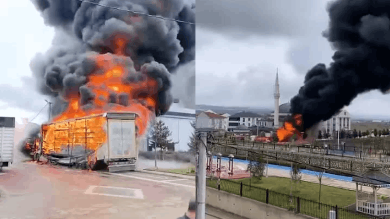 Kısa sürede büyüyen alevler, hemen yanında park halinde bulunan mobilya yüklü 16 BDD 870 plakalı dorsenin de tutuşmasına neden oldu.