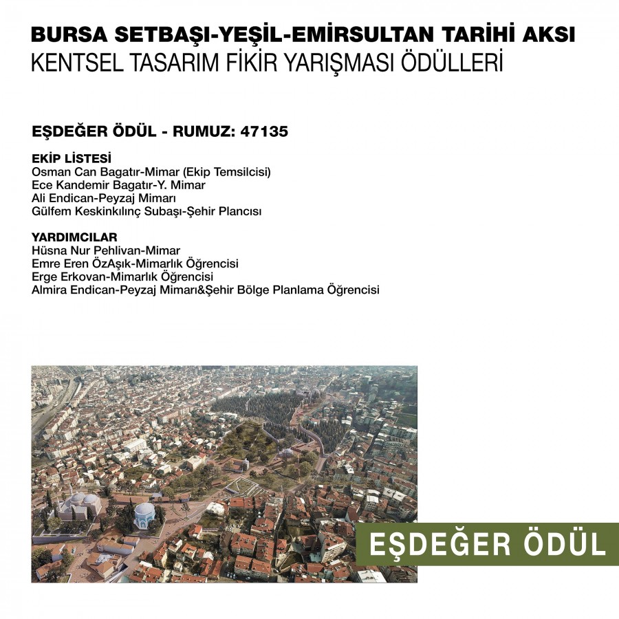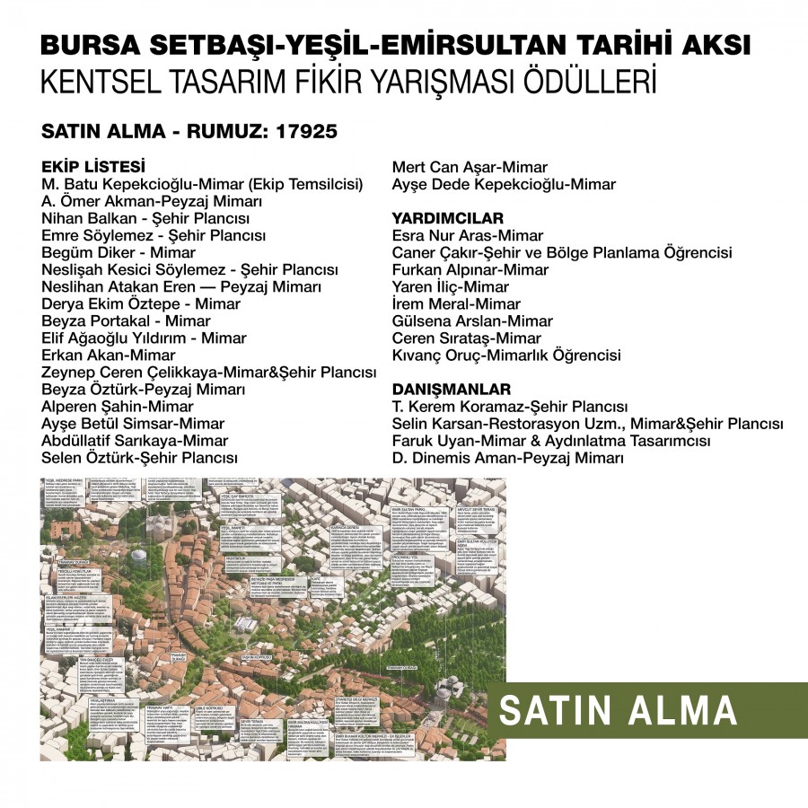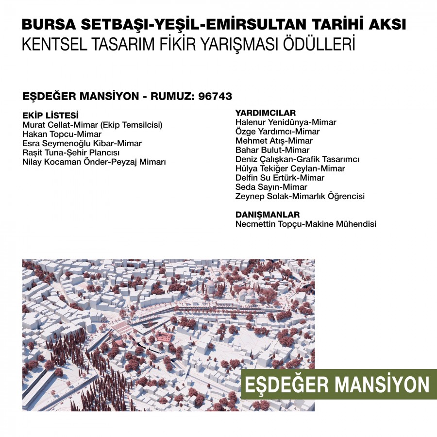 Yarışmaya başvuran projeleri değerlendirmek için toplanan jüri, birbirinden değerli eserler üstünde titiz bir çalışma gerçekleştirdi. Tüm proje fikirlerini inceleyen jüri; toplam 11 proje fikrine ödül verdi. Proje fikirlerinden 3 tanesi 'Eşdeğer' ödüle, 3 tanesi 'Eşdeğer Mansiyon' ödülüne, 5 tanesi ise 'Satın Alma' ödülüne layık bulundu. Yarışma sonucunda ortaya çıkan fikirler, Yıldırım Belediyesi tarafından yapılacak olan Koruma Amaçlı Uygulama İmar Planı için bir çerçeve ve zemin oluşturacak. Kazanan projelerin tanıtım ve ödül töreni önümüzdeki günlerde gerçekleştirilecek.