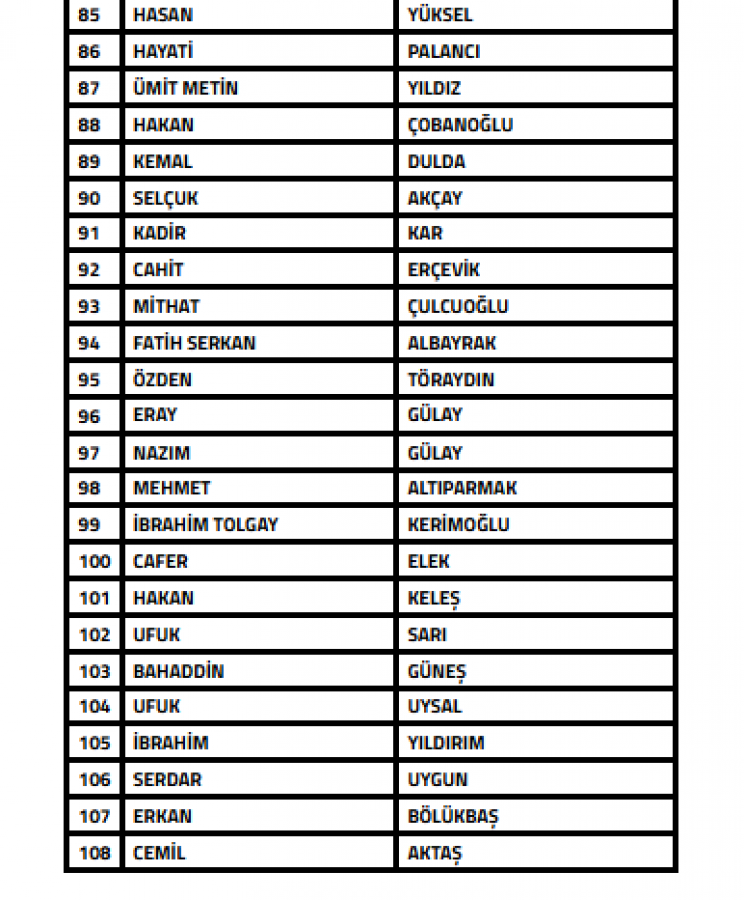 "Türkiye Futbol Federasyonu'nca yürütülen bahis soruşturması kapsamında son 5 yılda Profesyonel Liglerde Teknik Sorumlu olarak görev yapan ve görev yaptığı dönemlerde bahis oynadığı tespit edilen aşağıdaki kişilerin Futbol Disiplin Talimatı'nın 57. maddesi uyarınca 07.01.2026 tarihinden itibaren tedbirli olarak PFDK'ya sevk edilmesine karar verilmiştir."
