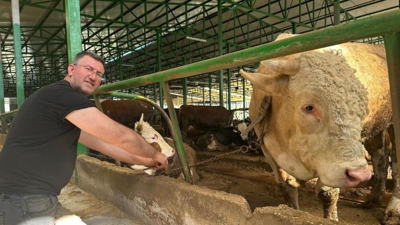 İlçeye bağlı Ürünlü Mahallesi'nde hayvancılık yapan İsmail Oktay, çiftliğin en büyük hayvanını yaklaşık 400 bin liraya satarak müşterilerinin alım gücüne destek olmayı hedeflediklerini belirtti. Kurban Bayramı'nın yaklaşmasıyla hareketlenen pazarlarda, özellikle bir ton ve üzeri ağırlığa sahip kurbanlıklar için talep edilen yüksek rakamlar tüketicilerin tepkisini çekerken, Bursalı besiciden örnek bir yaklaşım geldi. Simental ve şarole melezi olan dev boğa, 7 ortak tarafından satın alındı.