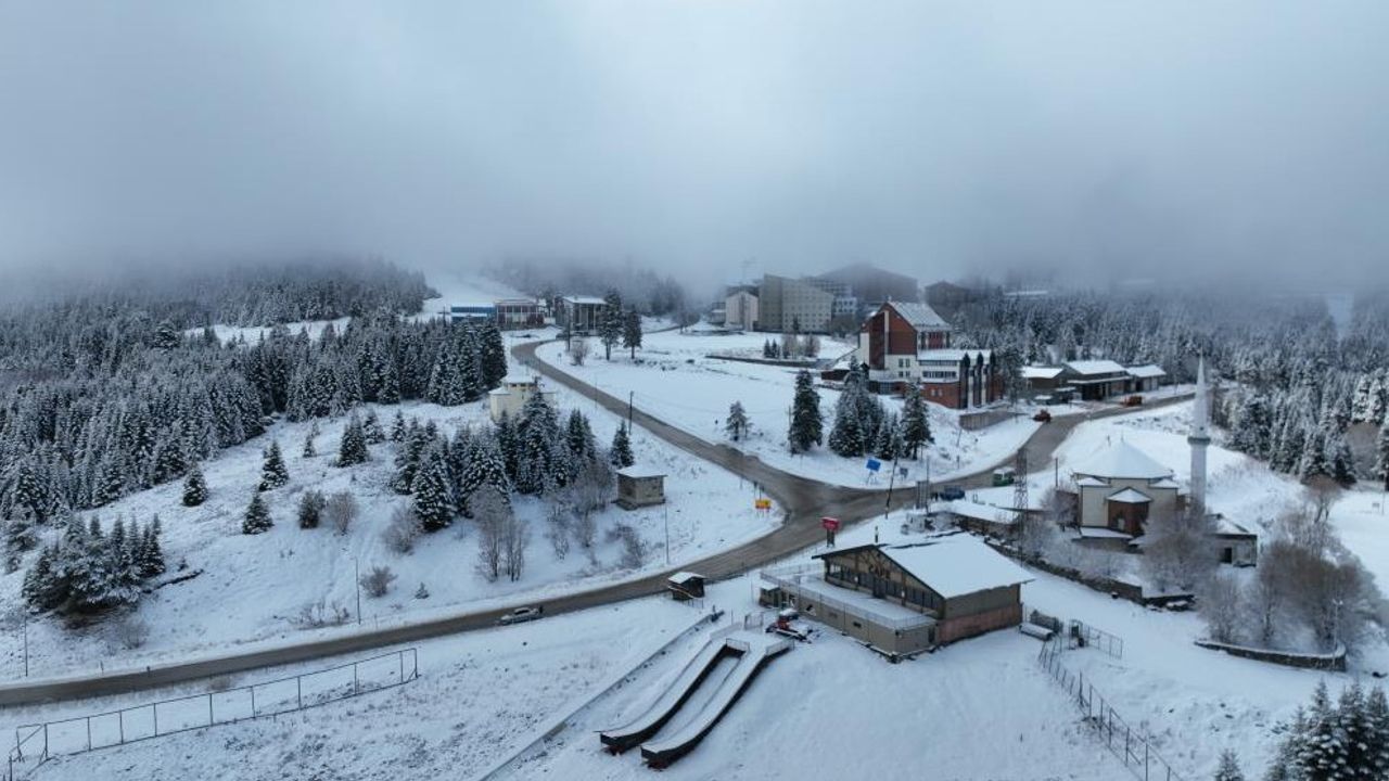 Uludağ'ın zirvesi, dün geceden beri etkili olan kar yağışıyla birlikte beyaz gelinliğini giydi.