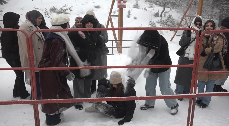 Zirveye İstanbul'dan geldiklerini belirten öğrenciler, çok güzel kar yağdığını ve mutlu olduklarını söyledi. Aracında kış lastiği ve zincir olmayan vatandaş ise "Kar yağışı sebebiyle çıkamadık. Geri döndük şimdi lastiği takıp çıkacağız" dedi.