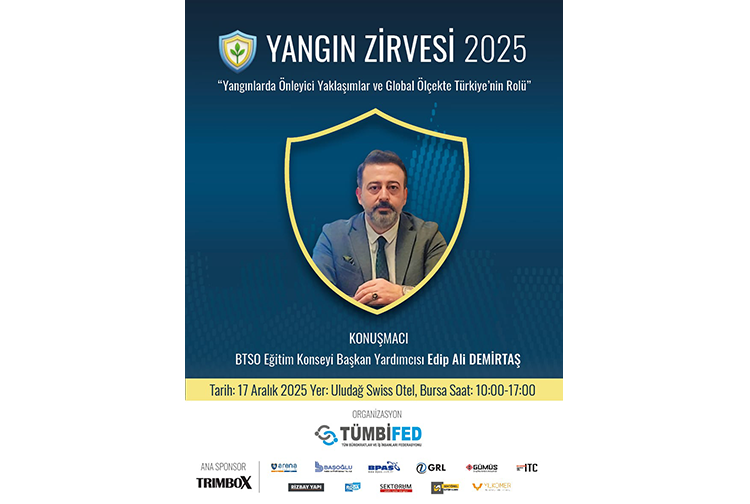 Yangın Zirvesi’nin Düzenleme Kurulu Başkanı ve BTSO Eğitim Konseyi Başkan Yardımcısı Edip Ali Demirtaş da, bu sene geniş katılımlı olarak düzenlenecek uluslararası organizasyon niteliğindeki Yangın Zirvesi’nin ana temasının “Birlikte önleyebiliriz” olduğunu söyledi. Etkinliğin ülkemizde ve dünyada yangın güvenliği farkındalığını artıracağını vurgulayan Demirtaş ”Zirvenin hedefleri arasında; elektrik yangınlarını başlamadan engelleyen standartların oluşturulması, SPD ve SSD’nin görev tanımlarının yönetmeliklerde netleşmesi, nötr–toprak regülasyonunun ulusal güvenlik standardı hâline gelmesi, uluslararası standartların artırılarak Türkiye’den önleyici nitelikte belirlenmesi, kamu–özel–akademi iş birliğinin güçlendirilmesi yer alıyor. Zirvenin bitiminde bir sonuç bildirgesi yayınlayacağız, aynı zamanda yapay zeka ile 5 dilde hazırlanmış olan 5K formatındaki belgeselimizi de farkındalık oluşması için üniversitelerimiz başta olmak üzere eğitim alanındaki kamu ve özel kurumlarımızda izlenime açacağız” dedi.