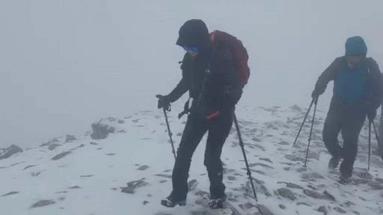 Bursa Yıldırım Dağcılık Kulübü ile Bursa Dağcılık ve Doğa Sporları İhtisas Kulübü üyeleri Uludağ'ın 2543 metrelik zirvesine kış sezonunun tırmanışını gerçekleştirdi. 2543 metrelik zirveye fırtına ve kar yağışı altında yürüyen dağcılar sezonun ilk kar yağışını kutladı.